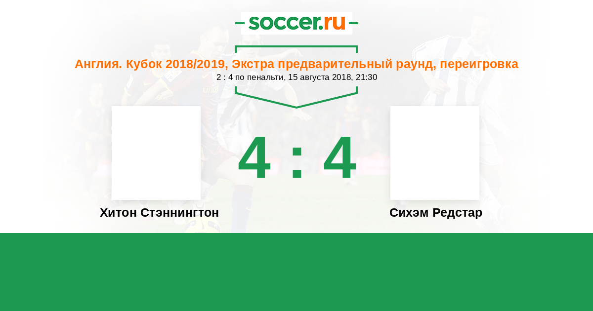 Хитон Стэннингтон - Сихэм Редстар: обзор матча 15 августа 2018