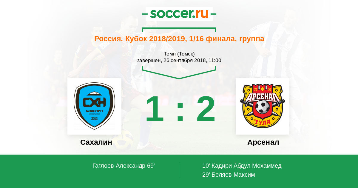 Сахалин - Арсенал: обзор матча 26 сентября 2018