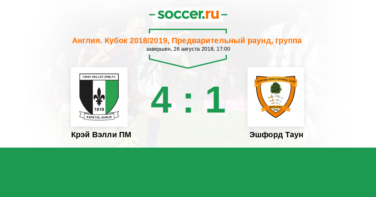 Крэй Вэлли ПМ - Эшфорд Таун: обзор матча 26 августа 2018