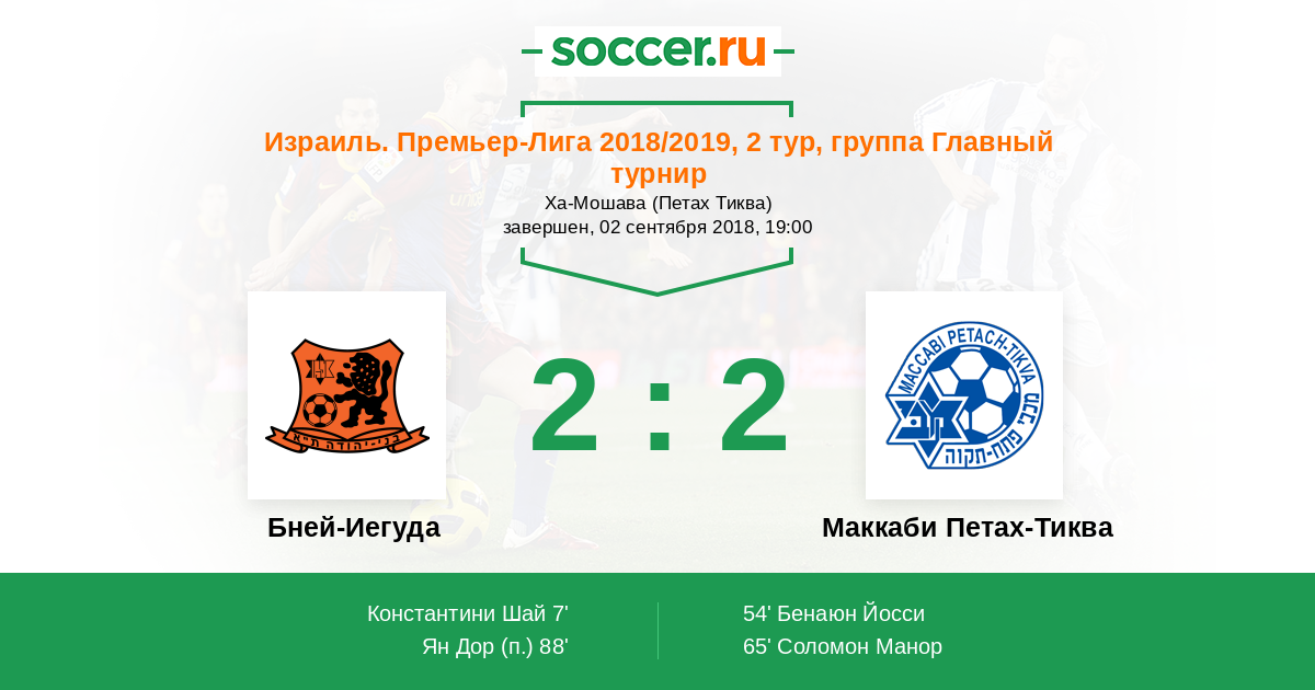 Бней-Иегуда - Маккаби Петах-Тиква: обзор матча 2 сентября 2018