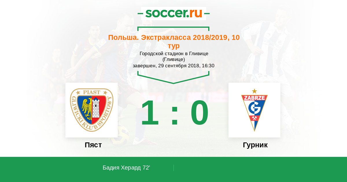 Пяст - Гурник: обзор матча 29 сентября 2018