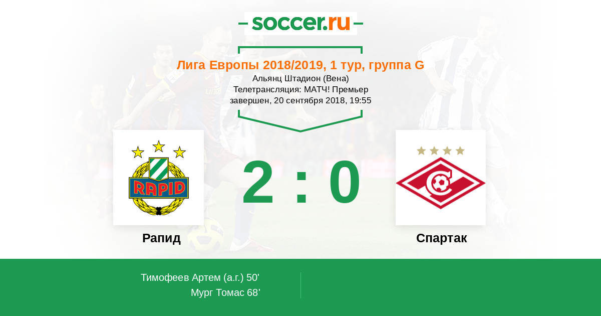 Финальный свисток! "Спартак" уступил "Рапиду" в стартовом туре Лиги Европы.