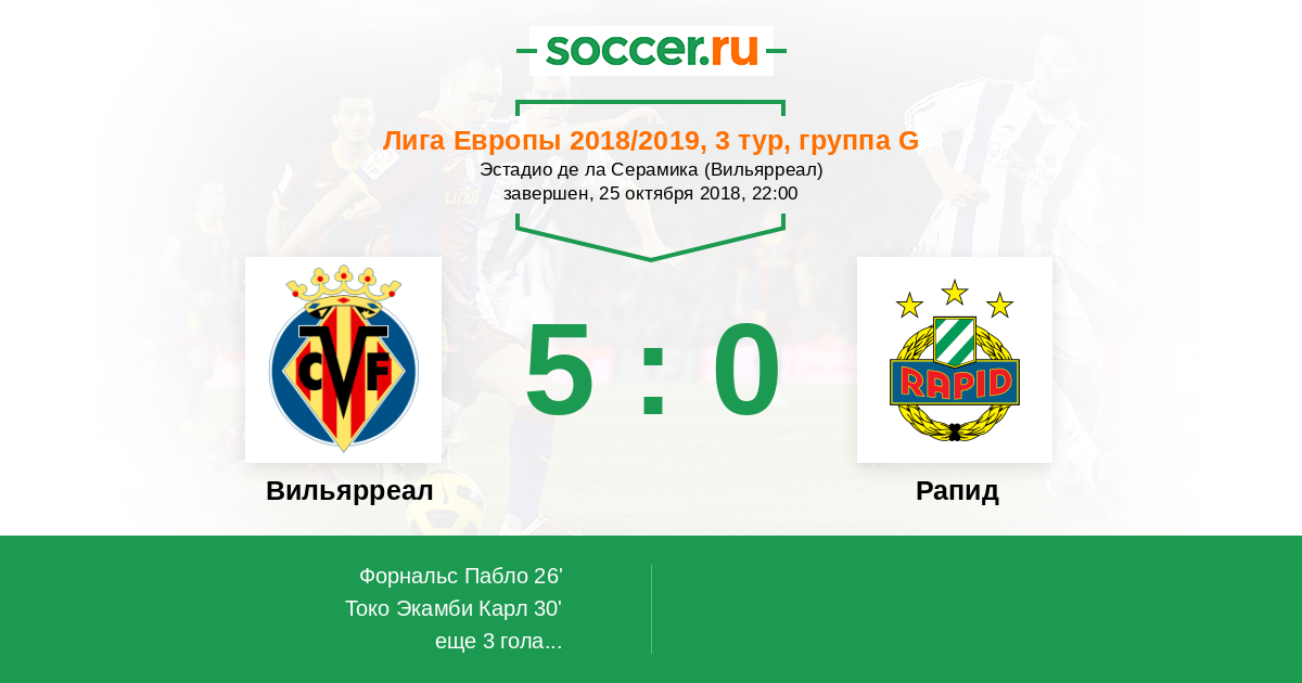 Вильярреал - Рапид: обзор матча 25 октября 2018