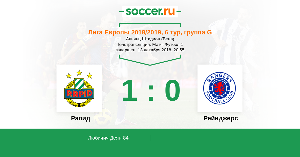 Рапид - Рейнджерс: обзор матча 13 декабря 2018