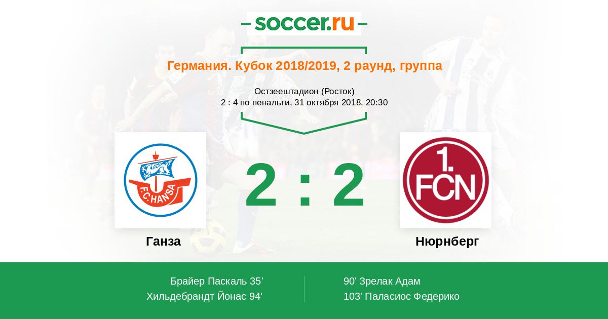 Ганза - Нюрнберг: обзор матча 31 октября 2018