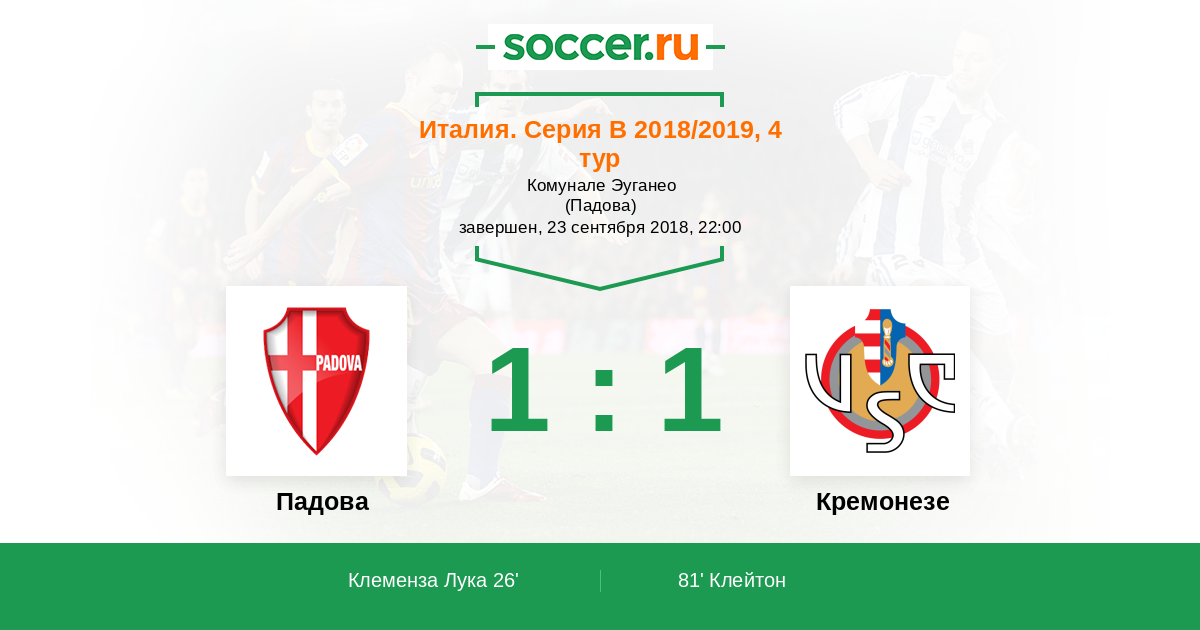Падова - Кремонезе: обзор матча 23 сентября 2018