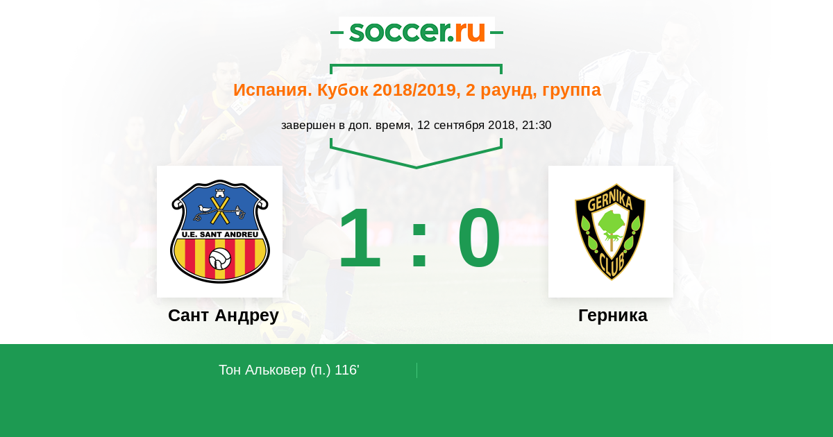 Сант Андреу - Герника: обзор матча 12 сентября 2018
