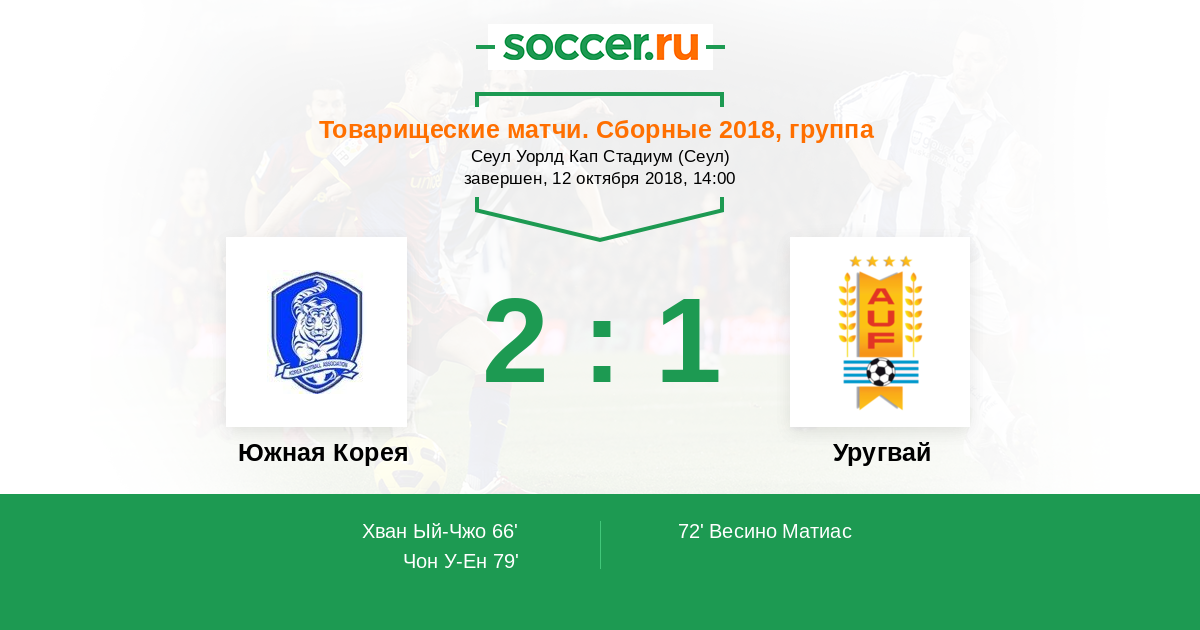 Южная Корея - Уругвай: обзор матча 12 октября 2018