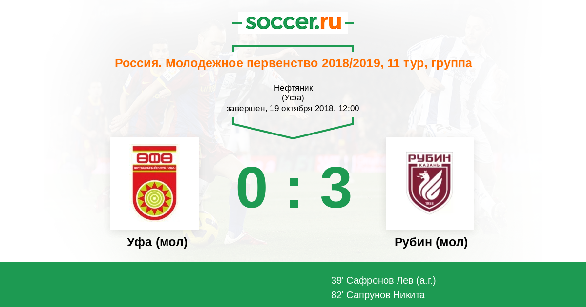 Уфа (мол) - Рубин (мол): обзор матча 19 октября 2018