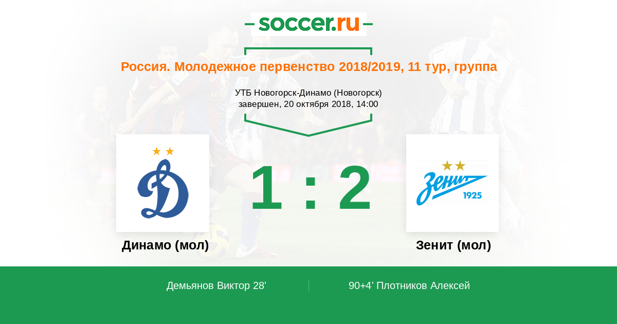 Динамо (мол) - Зенит (мол): обзор матча 20 октября 2018