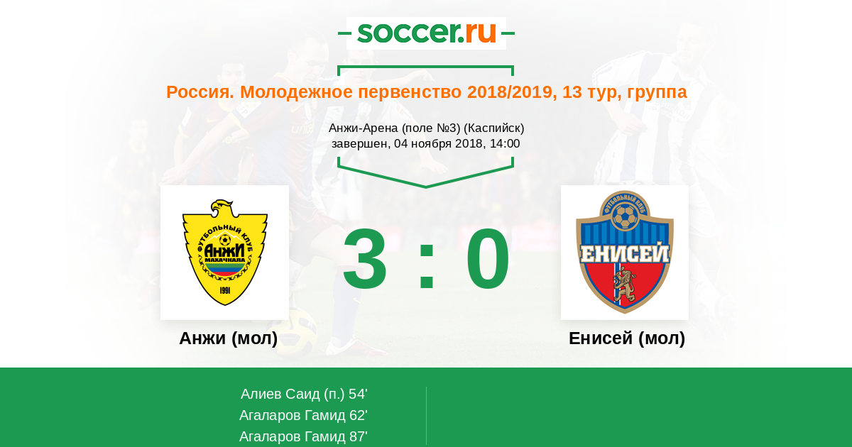Анжи (мол) - Енисей (мол): обзор матча 4 ноября 2018