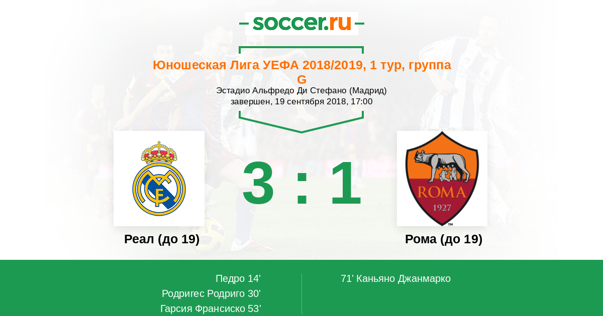 Реал (до 19) - Рома (до 19): обзор матча 19 сентября 2018