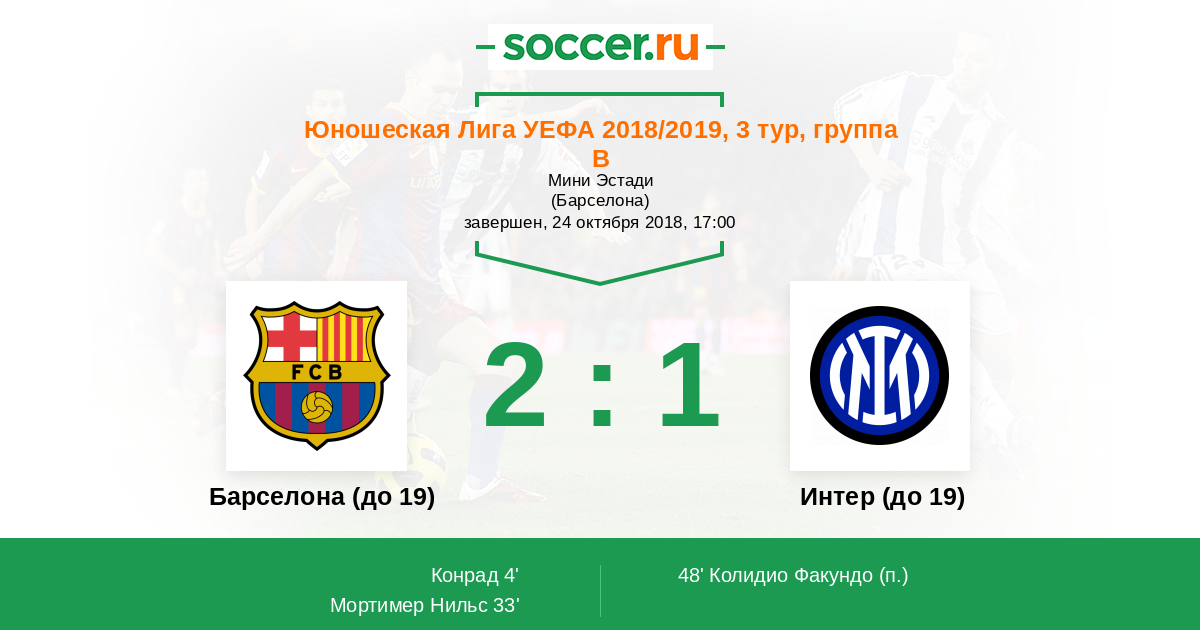 Барселона (до 19) - Интер (до 19): обзор матча 24 октября 2018