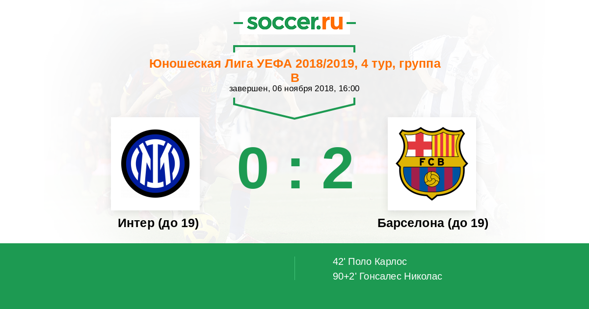 Интер (до 19) - Барселона (до 19): обзор матча 6 ноября 2018