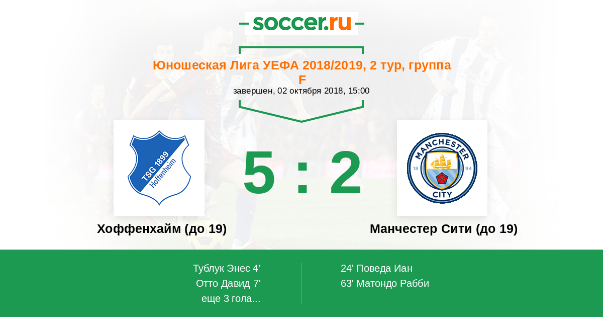 Хоффенхайм (до 19) - Манчестер Сити (до 19): обзор матча 2 октября 2018