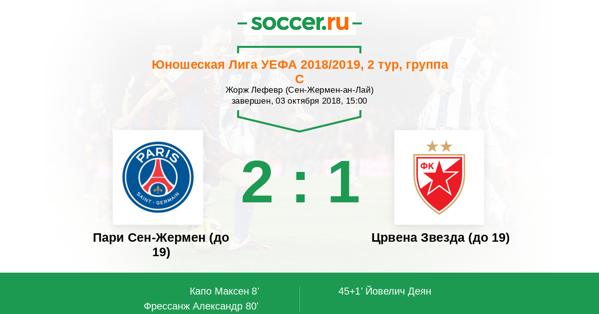 Пари Сен-Жермен (до 19) - Црвена Звезда (до 19): обзор матча 3 октября 2018