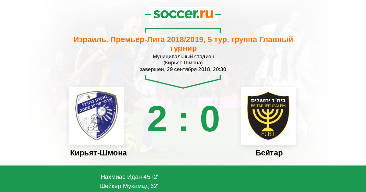 Кирьят-Шмона - Бейтар: обзор матча 29 сентября 2018
