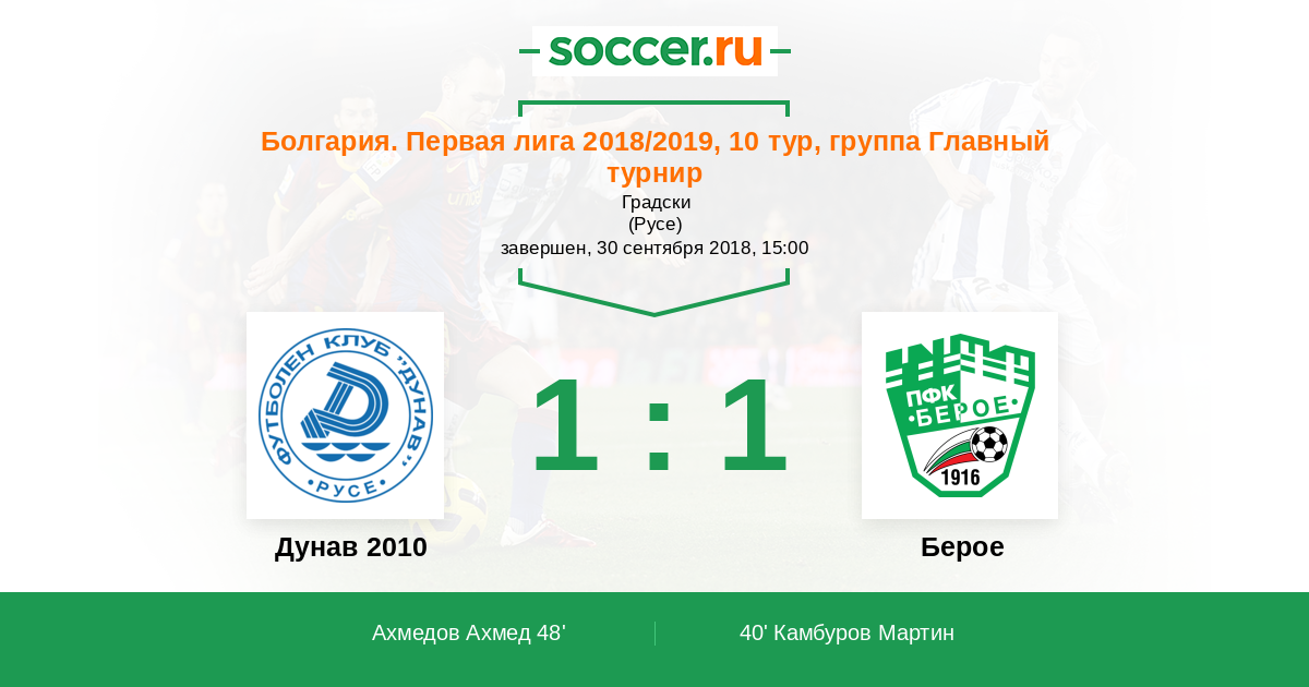 Дунав 2010 - Берое: обзор матча 30 сентября 2018