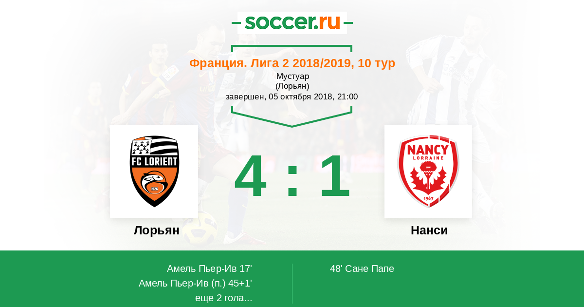 Лорьян - Нанси: обзор матча 5 октября 2018