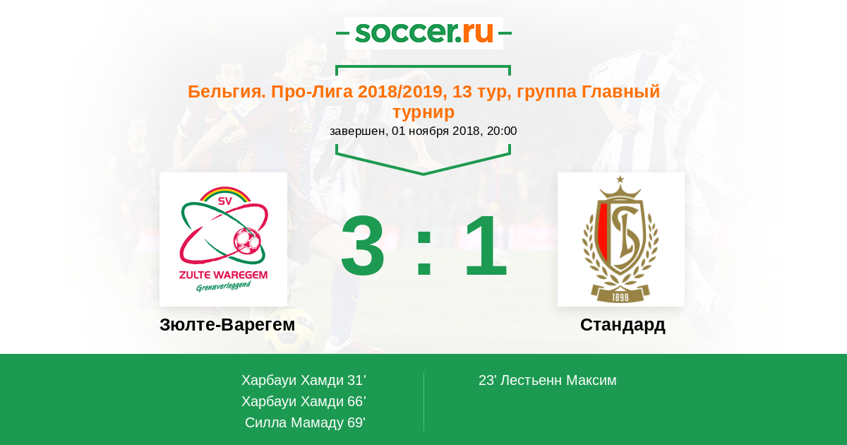 Зюлте-Варегем - Стандард: обзор матча 1 ноября 2018