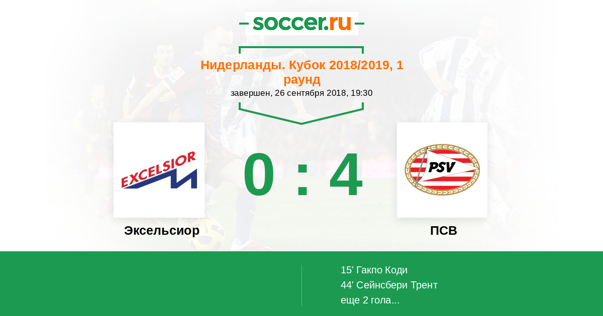 Эксельсиор - ПСВ: обзор матча 26 сентября 2018