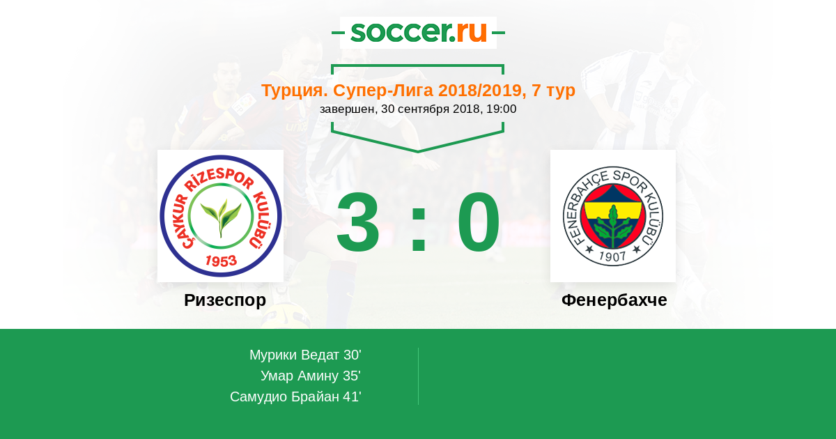 Ризеспор - Фенербахче: обзор матча 30 сентября 2018