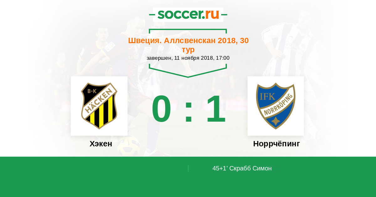 Хэкен - Норрчёпинг: обзор матча 11 ноября 2018