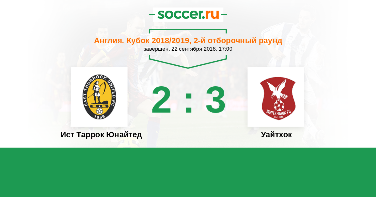 Ист Таррок Юнайтед - Уайтхок: обзор матча 22 сентября 2018