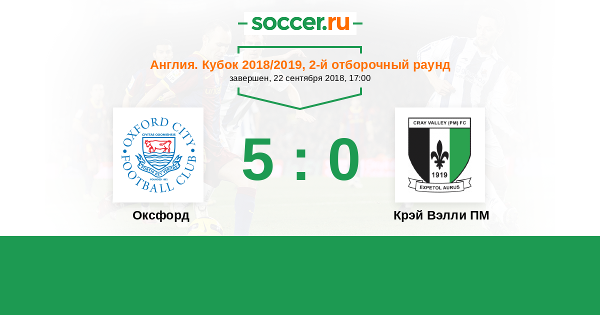 Оксфорд - Крэй Вэлли ПМ: обзор матча 22 сентября 2018