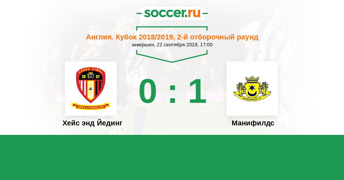 Хейс энд Йединг - Манифилдс: обзор матча 22 сентября 2018