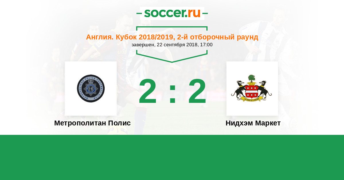 Метрополитан Полис - Нидхэм Маркет: обзор матча 22 сентября 2018