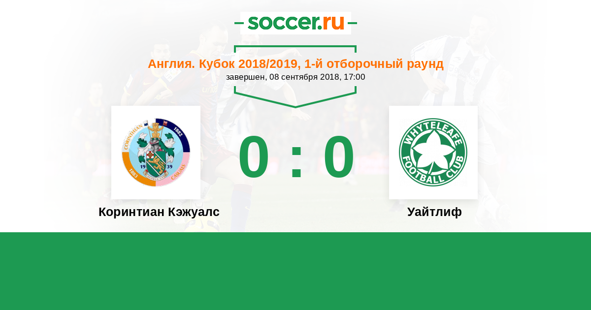 Коринтиан Кэжуалс - Уайтлиф: обзор матча 8 сентября 2018