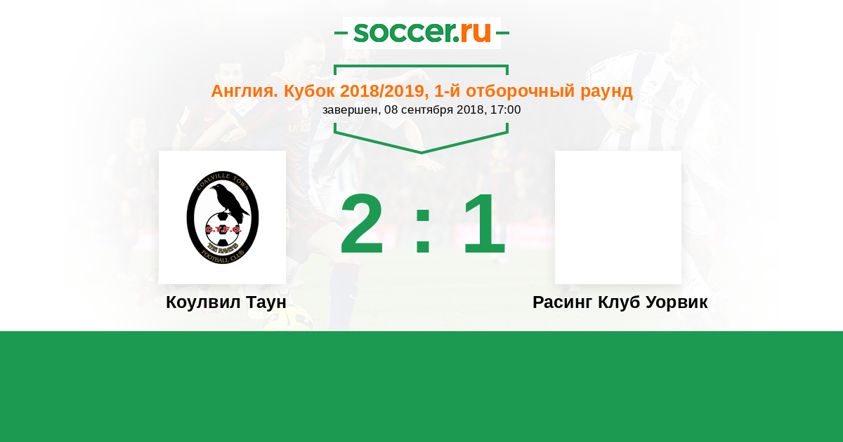 Коулвил Таун - Расинг Клуб Уорвик: обзор матча 8 сентября 2018