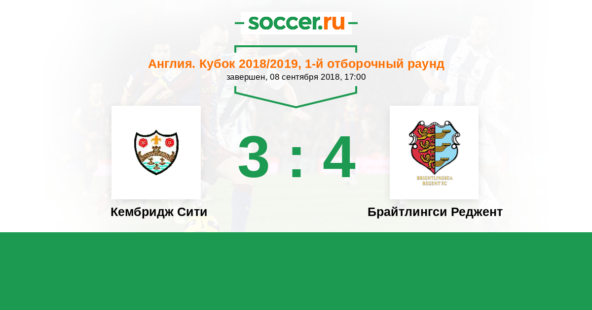 Кембридж Сити - Брайтлингси Реджент: обзор матча 8 сентября 2018