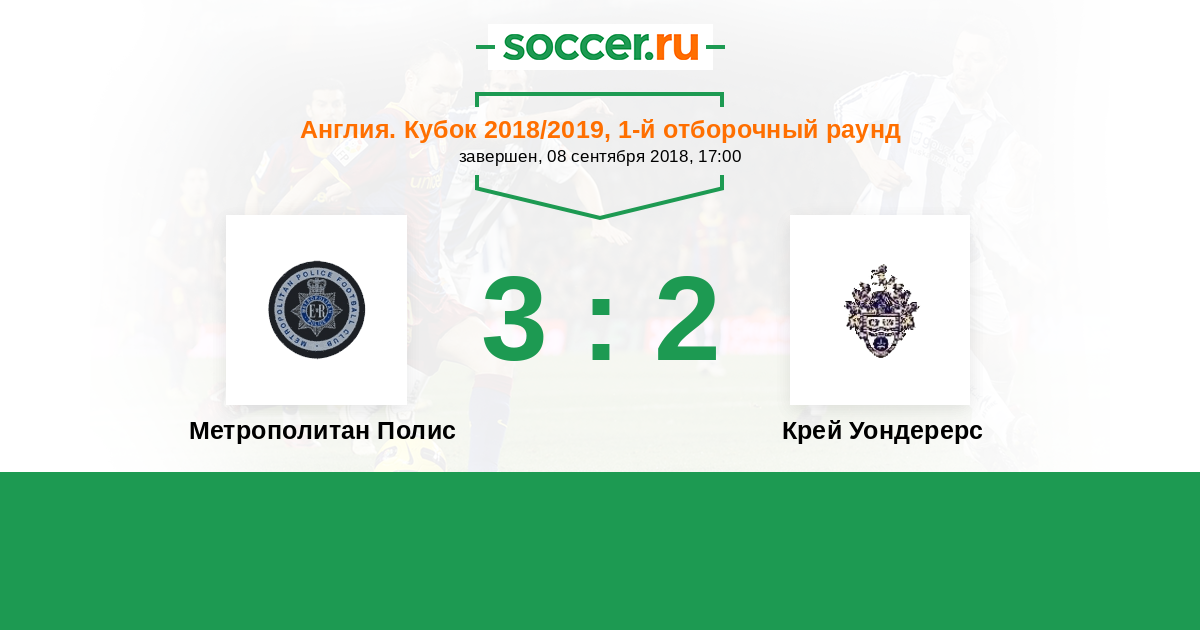 Метрополитан Полис - Крей Уондерерс: обзор матча 8 сентября 2018