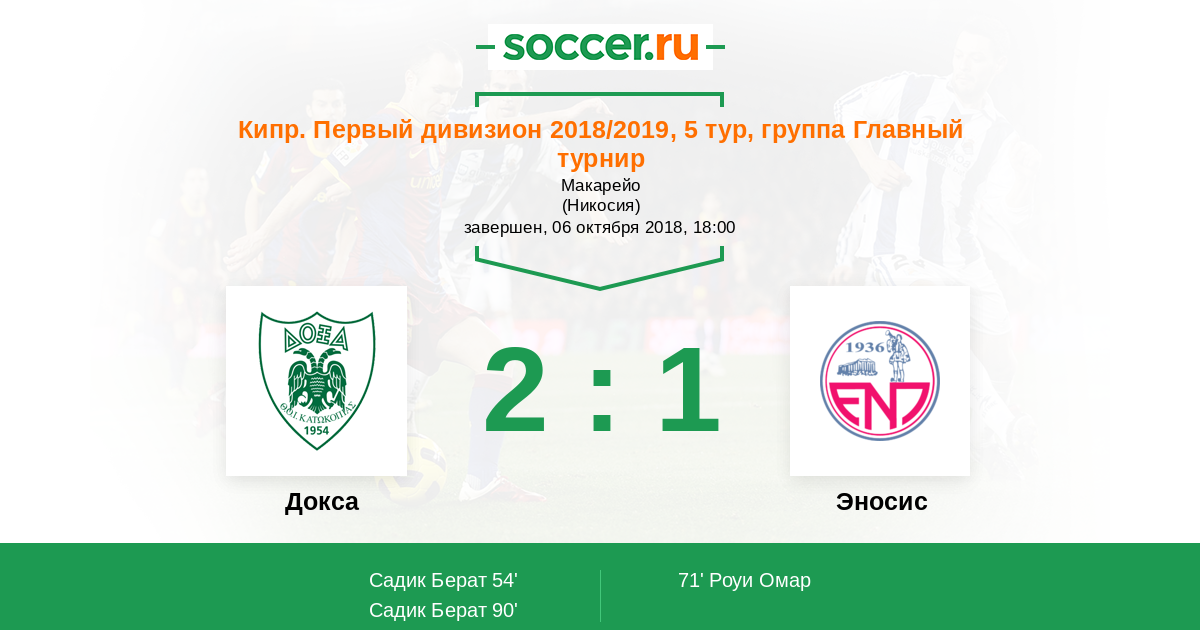 Докса - Эносис: обзор матча 6 октября 2018