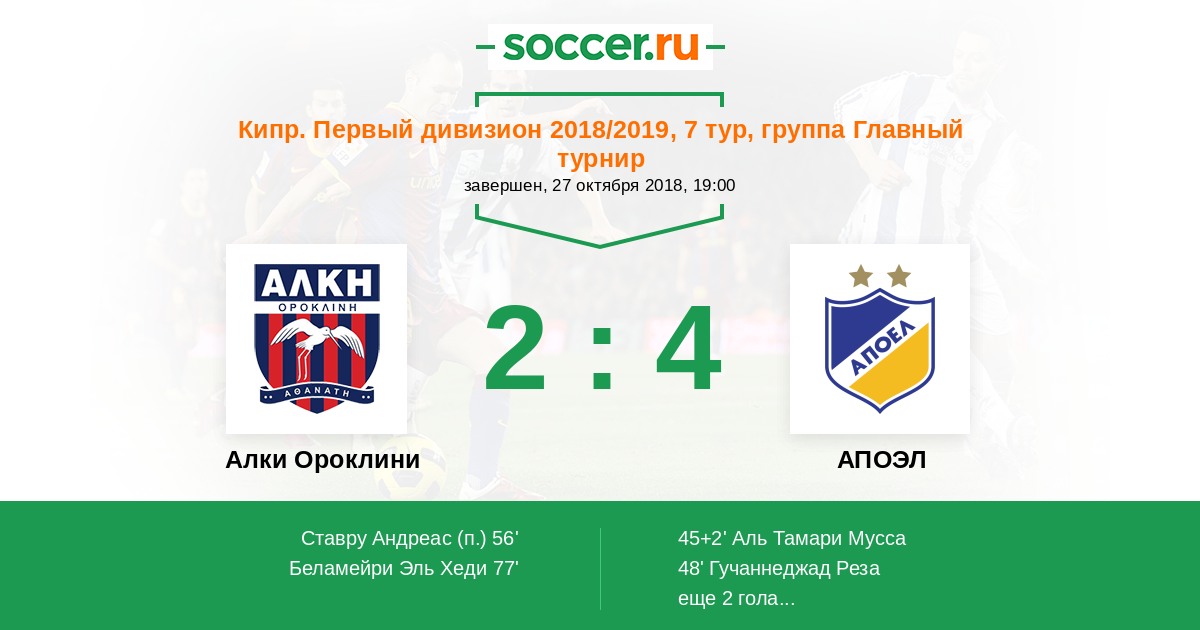 Алки Ороклини - АПОЭЛ: обзор матча 27 октября 2018