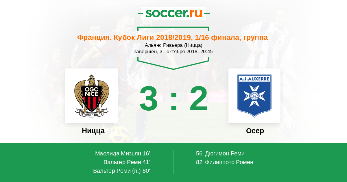 Ницца - Осер: обзор матча 31 октября 2018