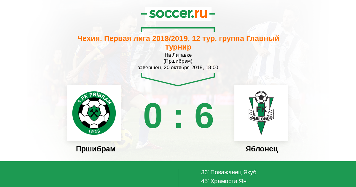 Пршибрам - Яблонец: обзор матча 20 октября 2018