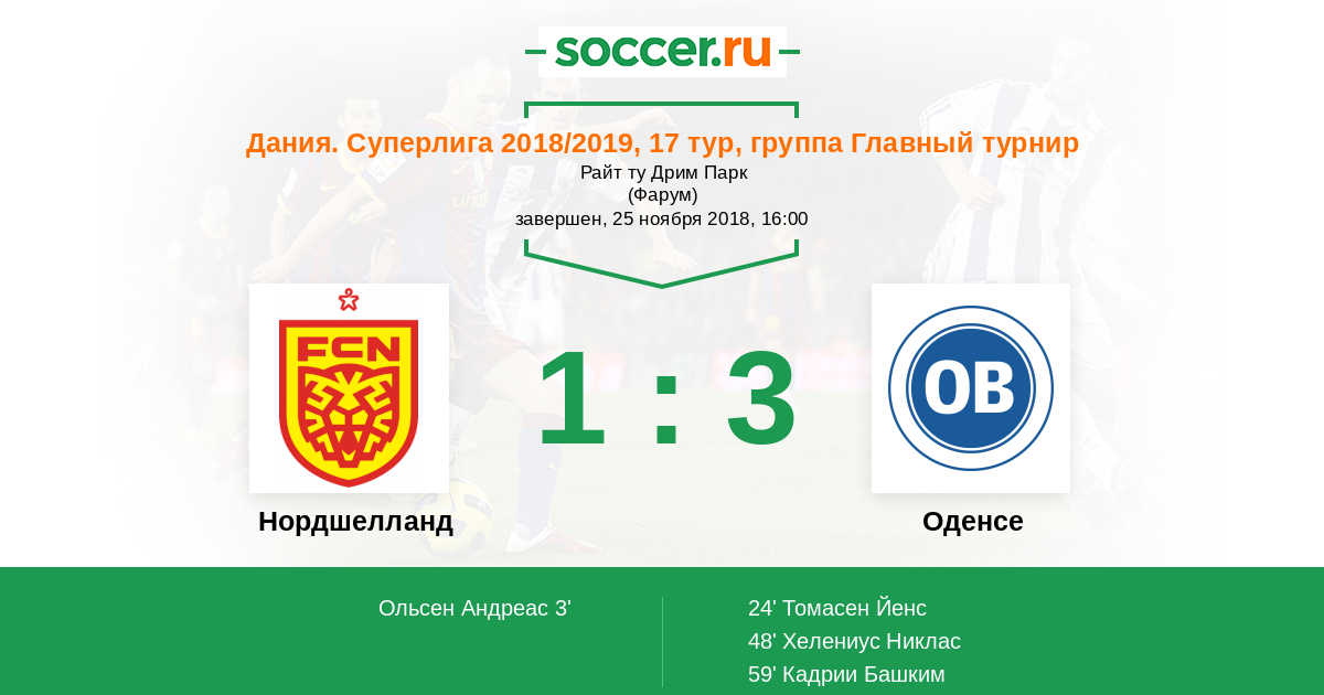 Нордшелланд - Оденсе: обзор матча 25 ноября 2018