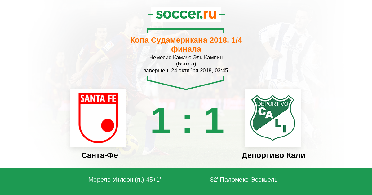 Санта-Фе - Депортиво Кали: обзор матча 24 октября 2018