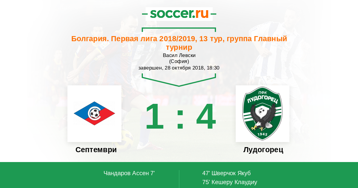 Септември - Лудогорец: обзор матча 28 октября 2018