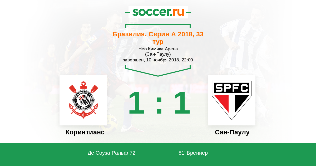 Коринтианс - Сан-Паулу: обзор матча 10 ноября 2018