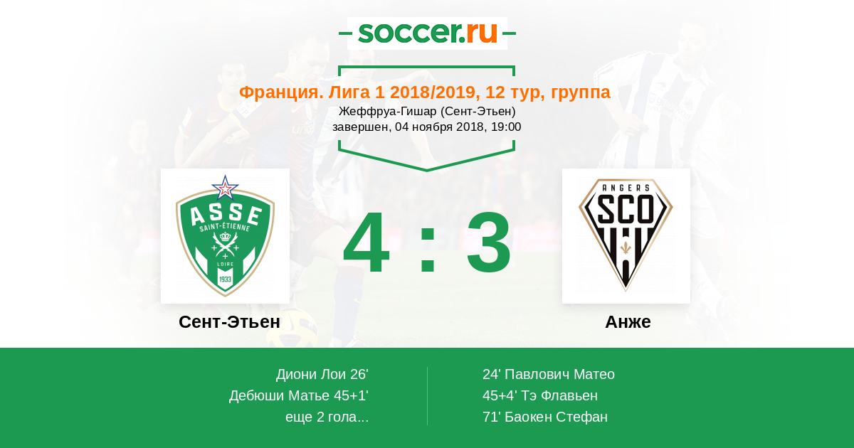 Сент-Этьен - Анже: обзор матча 4 ноября 2018