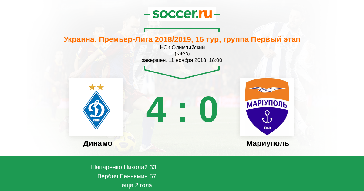 Динамо - Мариуполь: обзор матча 11 ноября 2018