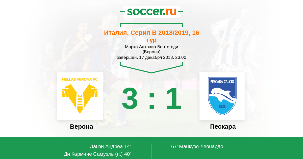 Верона - Пескара: обзор матча 17 декабря 2018