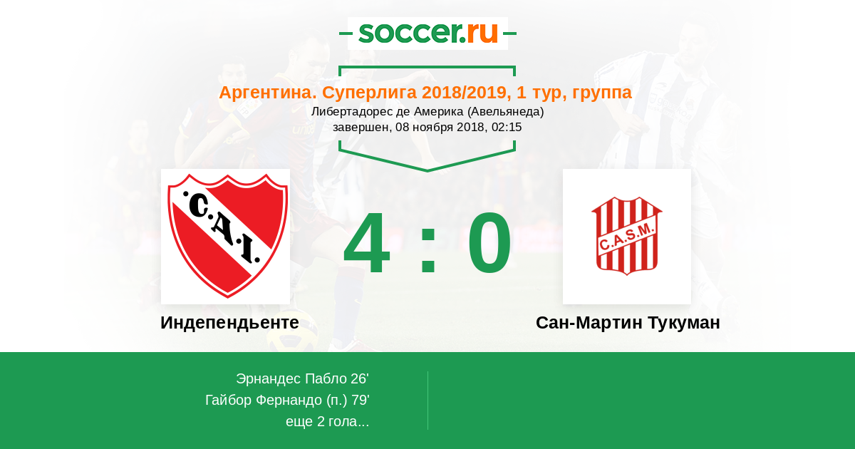 Индепендьенте - Сан-Мартин Тукуман: обзор матча 8 ноября 2018