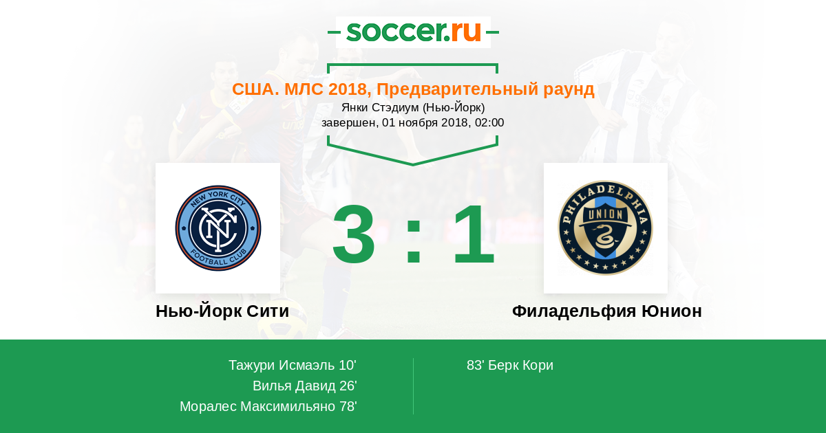Нью-Йорк Сити - Филадельфия Юнион: обзор матча 1 ноября 2018
