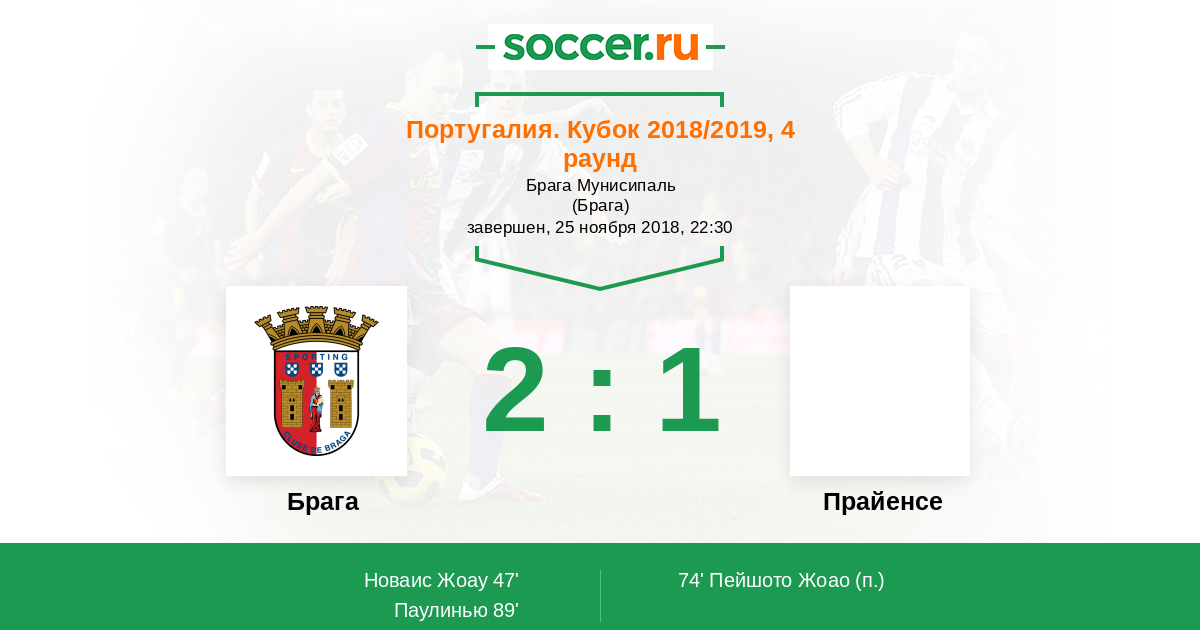 Брага - Прайенсе: обзор матча 25 ноября 2018