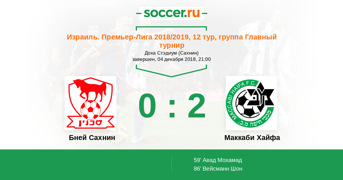 Бней Сахнин - Маккаби Хайфа: обзор матча 4 декабря 2018